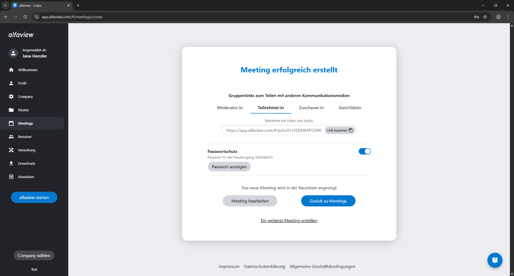 Wenn Sie ein neues Meeting erstellen, erhalten Sie für dieses automatisch die Moderationsrolle.