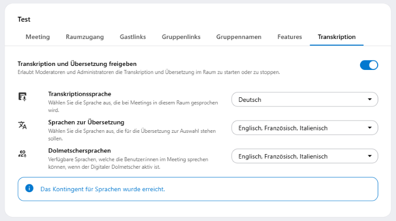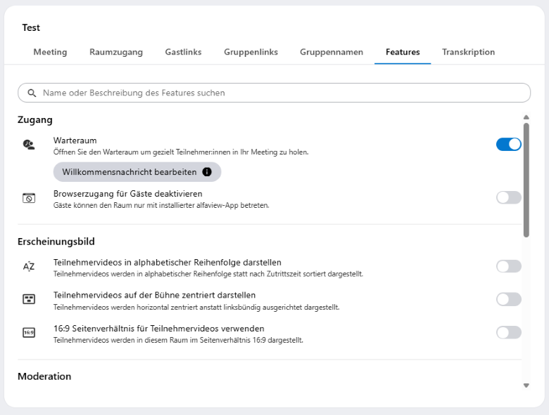 - Warteraum: Sie können den Warteraum an- oder ausschalten, indem Sie auf den Schalter klicken.
