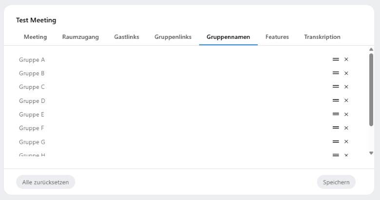Nach der Aktualisierung eines Meetings werden Ihnen erneut alle Gruppenlinks angezeigt. Bereits versendete Gruppenlinks behalten Ihre Gültigkeit und werden entsprechend der Änderungen aktualisiert.