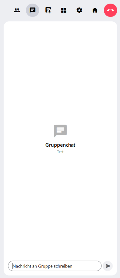 Gruppenchat im Funktionsmenü angedeutet. - Nachrichten sind für alle Teilnehmenden eines alfaview-Raums inklusive der Untergruppen sichtbar.