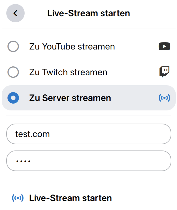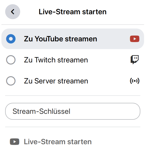 - Wählen Sie aus, zu welcher Plattform Sie streamen wollen.