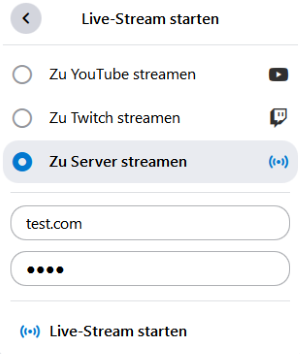Live-Stream starten. - Wählen Sie Zu Server streamen aus.