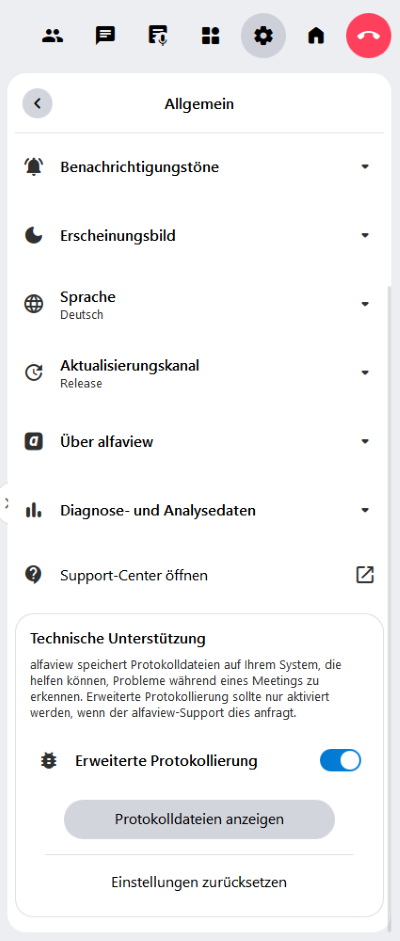 Die Logdateien finden Sie in der alfaview-App und der Webanwendung unter: