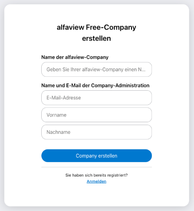 Bitte beachten Sie, dass diese E-Mail-Adresse fest mit Ihrer alfaview-Company verknüpft ist und eine nachträgliche Änderung der E-Mail-Adresse nicht möglich ist.