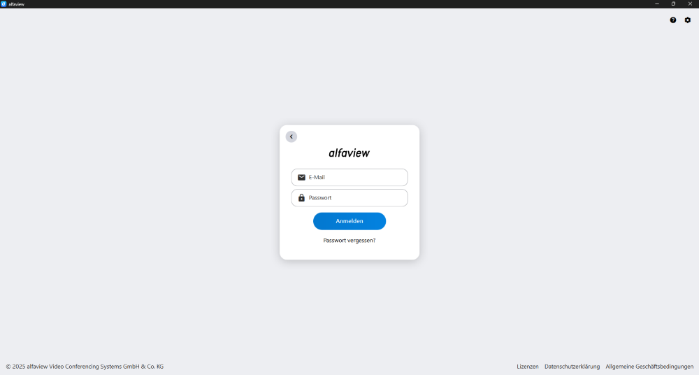 • Melden Sie sich mit Ihrer E-Mail-Adresse und Ihrem Passwort in der alfaview-App, im Webclient sowie auf der alfaview-Verwaltungsoberfläche an. Sie können nun weitere Benutzer:innen anlegenGäste einladen und Ihre alfaview-Räume konfigurieren.