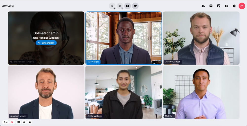 - Aktivierung der Dolmetscherfunktion im alfaview-Raum für Teilnehmende