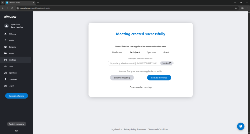 - After creating the meeting, you can copy group links with the different roles and send them to the participants via your preferred communication medium.