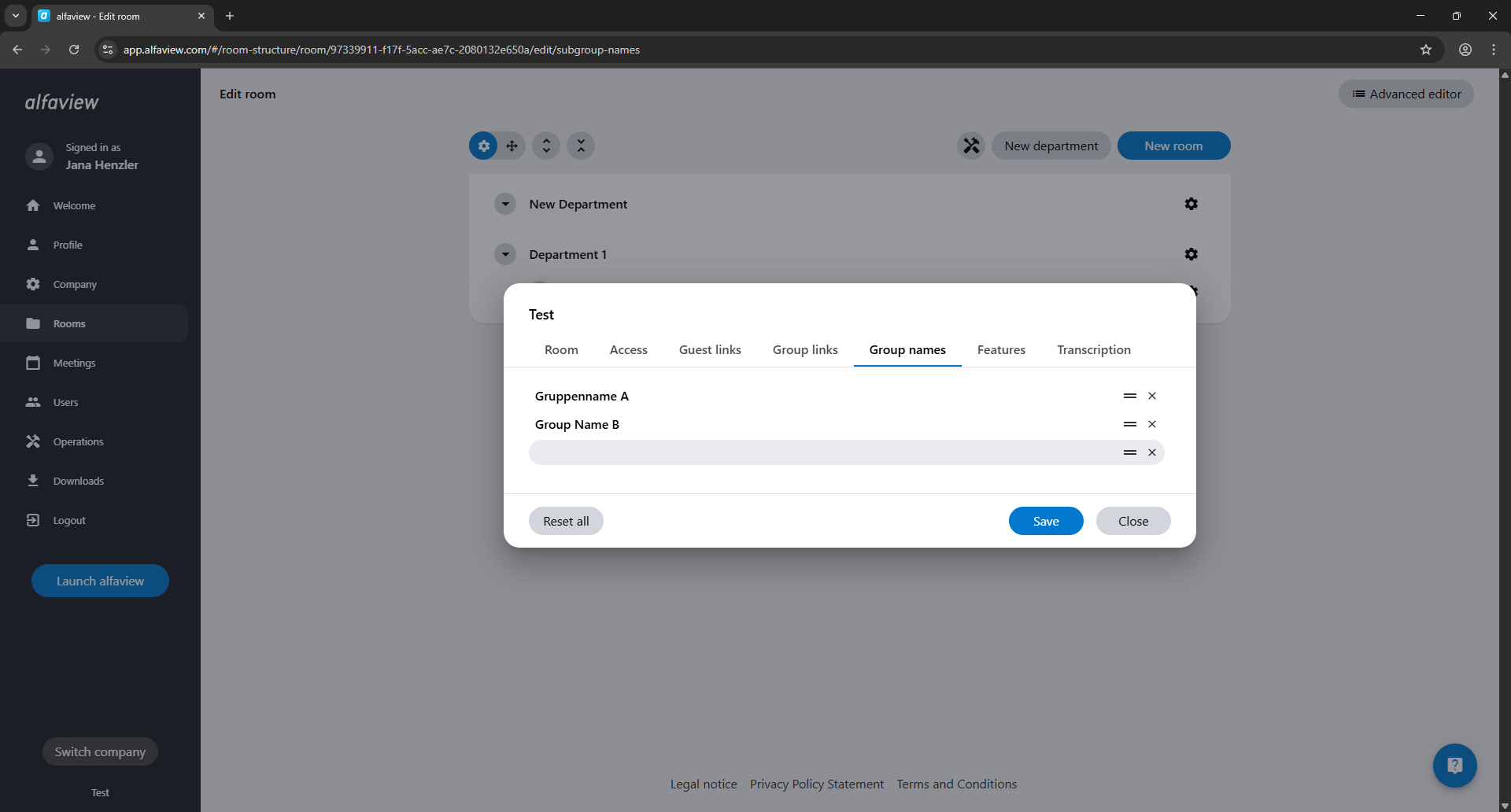 As a room administrator, you can switch directly to the administration interface if you are currently in an alfaview room.