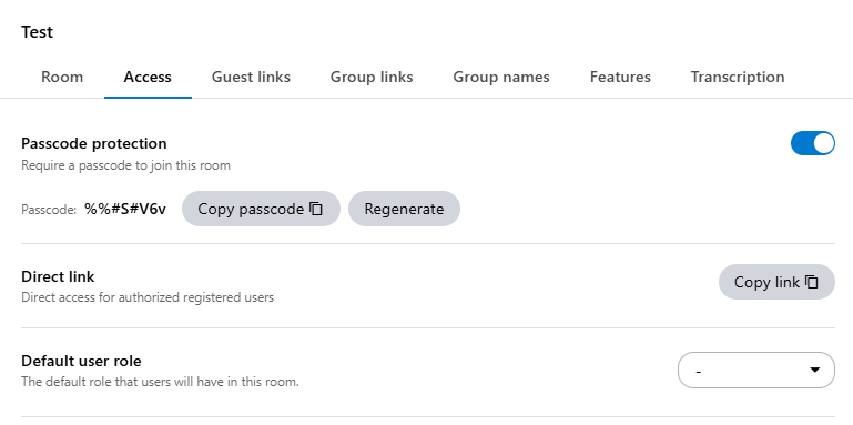If you grant users access to a room and do not select a specific role, they are automatically assigned the default user role.