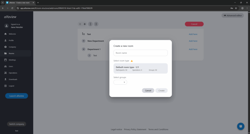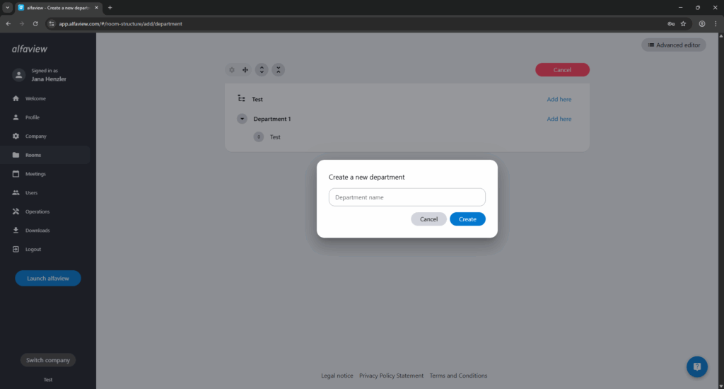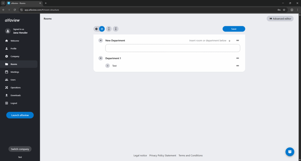 - If you have several departments, select the location where you would like to insert the room. Then click on Add here.