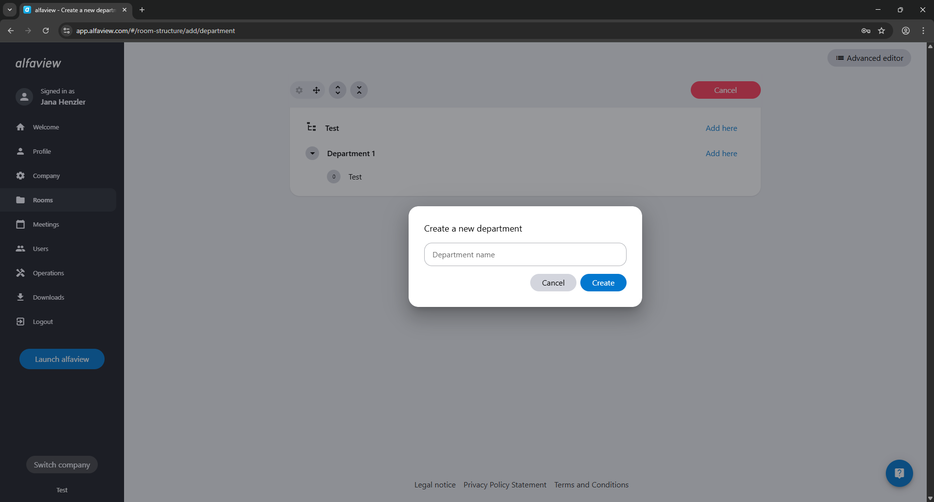 To change the department name, click the Settings icon. If there is no room in the department, you can also delete it.