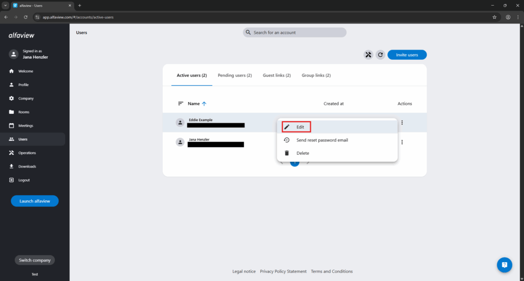 Depending on the permissions, you can edit a user. To edit a user, proceed as follows: