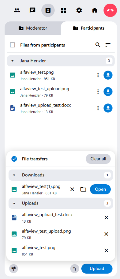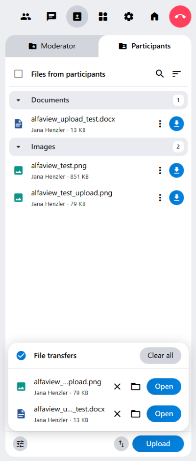 File sharing allows you to exchange files with other people in the alfaview room.