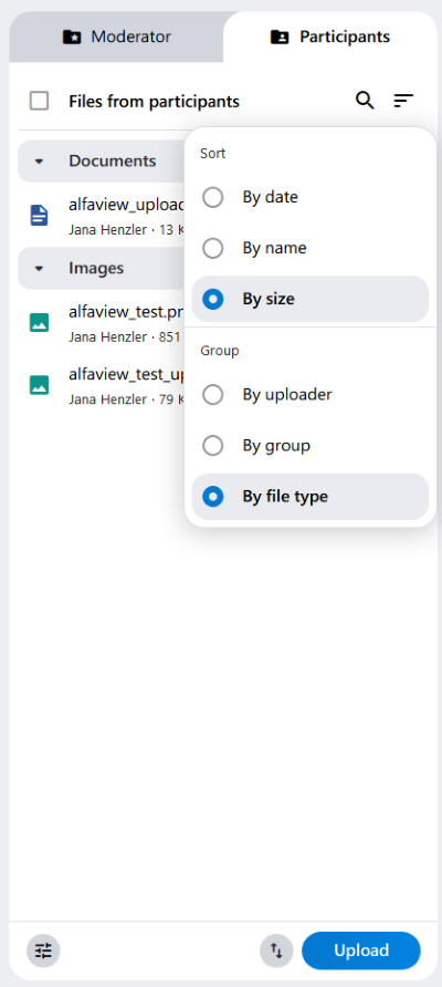 - Show me files from all groups: While participants can only see the files from the room they are in, the moderator has the option of displaying all files from all room groups.