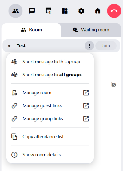 As a room administrator, you have additional functions in the app in addition to the moderator functions. To access these functions, open the