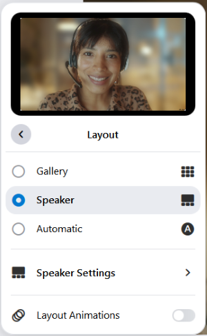 With the layout settings, you can decide on the appearance of your recording. You can display participants as a gallery or in speaker view. In addition, you have the option of selecting the Automatic setting. The preview is provided directly in the selection window.
