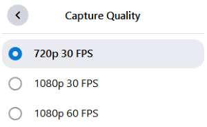 Decide on the quality you want your video to be recorded in. You can choose between 720p 30 FPS, 1080p 30 FPS and 1080p 60 FPS.