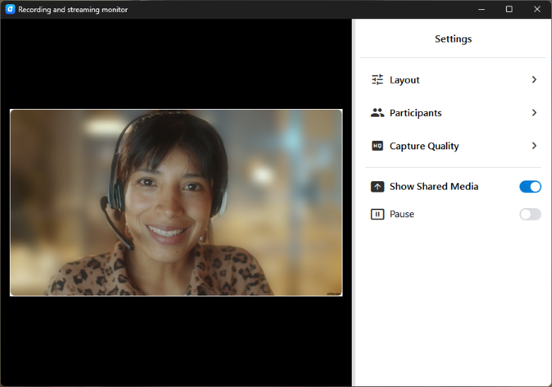 You can see a preview of the recording in the mini window. By clicking on this preview image, the Recording and Streaming Monitor will open. This also offers all options for adjusting the settings.