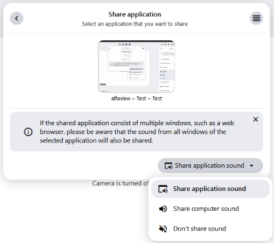 Only the audio of your chosen application gets shared. Every other audio source will not be shared. - Share computer sound