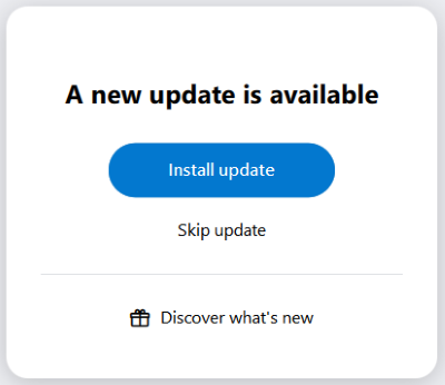 - Microsoft Windows: The application will exit, update and restart itself.