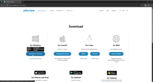 - Download alfaview from the download page by clicking on the button under the Windows logo.