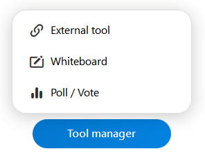 - From the list, select either the Whiteboard or the external tool you want to open.