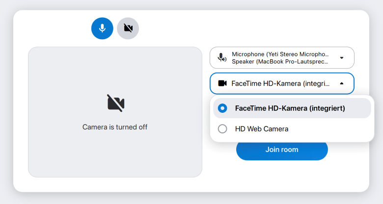 - Click on the drop-down menu with the camera icon and the name of the preselected camera.