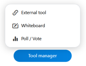 Toolbox icon in the main menu to open the list of tools. - From the list, select either the Whiteboard or the external tool you want to open.